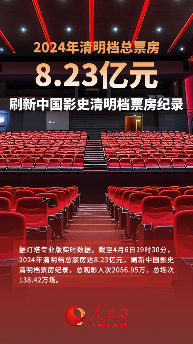 據(jù)燈塔專業(yè)版實(shí)時(shí)數(shù)據(jù),截至4月6日19時(shí)30分,2024年清明檔總票房達(dá)8.23億元,刷新中國影史清明檔票房紀(jì)錄,總觀影人次2056.95萬,總場(chǎng)次138.42萬場(chǎng)。