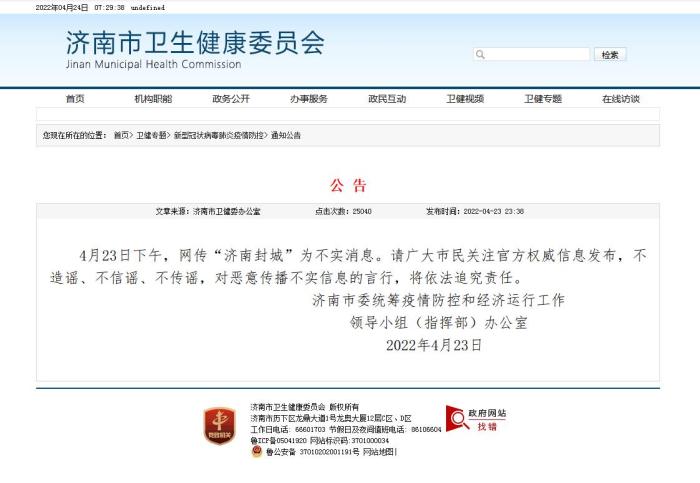 濟(jì)南:網(wǎng)傳“濟(jì)南封城”為不實消息