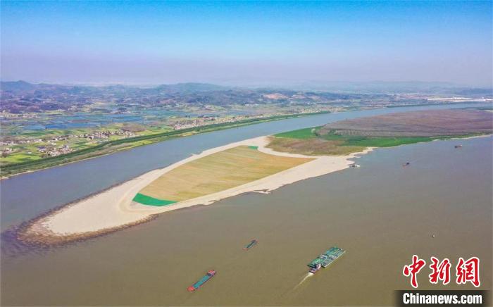 圖為航拍武漢至安慶段6米水深航道整治工程“沙灘”變“綠洲” 陳宇 攝