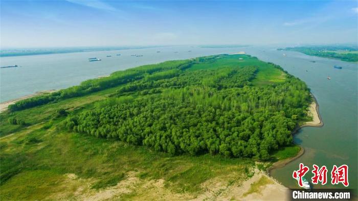 圖為航拍武漢至安慶段6米水深航道整治工程生態(tài)效果顯現(xiàn) 陳宇 攝