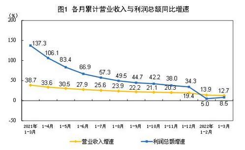 總體來看,一季度減稅降費(fèi)、助企紓困多措并舉,工業(yè)企業(yè)利潤(rùn)保持平穩(wěn)增長(zhǎng)。但也要看到,外部輸入性通脹壓力加大,新冠肺炎疫情多點(diǎn)散發(fā),給工業(yè)經(jīng)濟(jì)平穩(wěn)發(fā)展帶來諸多挑戰(zhàn),企業(yè)生產(chǎn)經(jīng)營(yíng)困難增多。一季度,規(guī)模以上工業(yè)企業(yè)利潤(rùn)增速比上年四季度回落3.8個(gè)百分點(diǎn),并且不同行業(yè)、不同類型企業(yè)間利潤(rùn)分化明顯;工業(yè)企業(yè)營(yíng)業(yè)收入增長(zhǎng)放緩,工業(yè)產(chǎn)銷銜接水平下降,企業(yè)庫存高位運(yùn)行,中小企業(yè)成本壓力仍然較大。