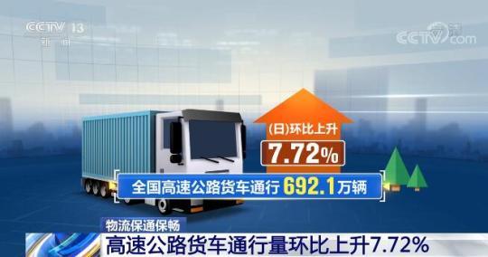 央視網(wǎng)消息:最新的全國物流保通保暢運(yùn)行數(shù)據(jù)顯示,全國貨運(yùn)物流有序運(yùn)行,高速公路貨車通行量持續(xù)恢復(fù)。