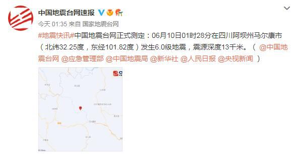 據(jù)國家地震臺(tái)網(wǎng)官方微博消息,四川阿壩州今晨發(fā)生多次地震,其中01時(shí)28分發(fā)生6.0級(jí)地震,震源深度13千米。另據(jù)央視新聞客戶端消息,國務(wù)院抗震救災(zāi)指揮部辦公室、應(yīng)急管理部已啟動(dòng)國家地震應(yīng)急四級(jí)響應(yīng)。應(yīng)急管理部連夜派出工作組赴四川指導(dǎo)協(xié)助地方開展抗震救災(zāi)工作。四川省緊急啟動(dòng)地質(zhì)災(zāi)害三級(jí)應(yīng)急響應(yīng),目前暫未收到震區(qū)及周邊區(qū)域因次生地質(zhì)災(zāi)害造成人員傷亡的報(bào)告。