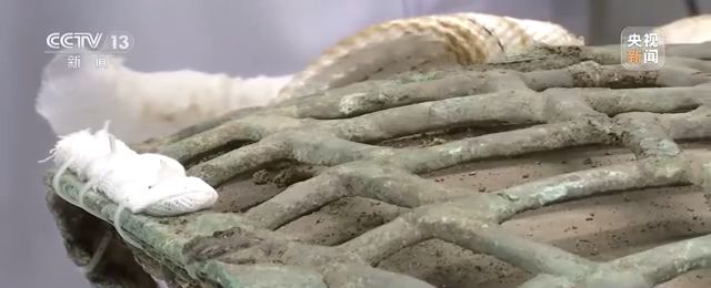 在這件被網(wǎng)友稱為月光寶盒的青銅器網(wǎng)格上,甚至在這件網(wǎng)格狀青銅器籠罩的玉石上面,考古工作者都發(fā)現(xiàn)了大量的絲織物殘留。這為解讀古蜀文明提供了非常有價(jià)值的信息。