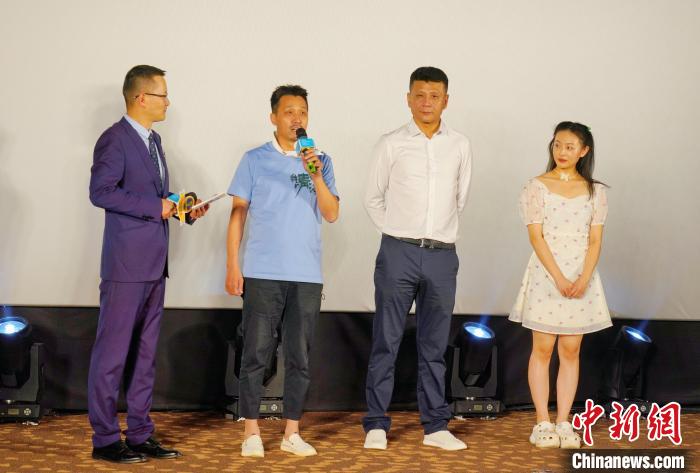 圖為導(dǎo)演及男女主角接受采訪?!∑钤鲚?攝
