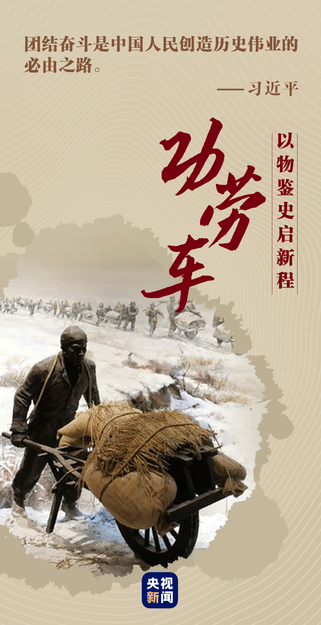 2017年12月13日,習(xí)近平總書記在參觀淮海戰(zhàn)役紀(jì)念館時(shí),深有感觸地說:“淮海戰(zhàn)役就是小推車推出來的勝利。我們要好好回報(bào)人民,讓人民過上幸福美好的生活。”
