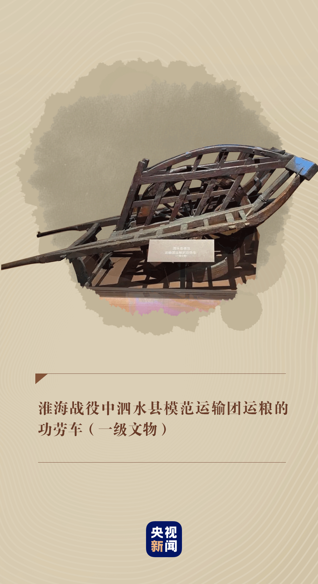 在中國共產(chǎn)黨歷史展覽館,靜臥著一輛淮海戰(zhàn)役中泗水縣模范運(yùn)輸團(tuán)運(yùn)糧的功勞車。它向人們講述著當(dāng)年硝煙彌漫的戰(zhàn)場上,人民群眾團(tuán)結(jié)一心,用一輛輛小車推出戰(zhàn)役勝利的感人故事。