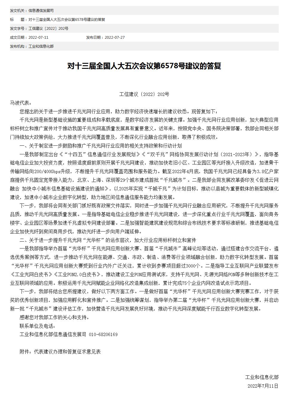 中新網(wǎng)7月27日電 工信部網(wǎng)站27日發(fā)布對十三屆全國人大五次會議第6578號建議的答復(fù)。工信部表示,下一步,將會同有關(guān)部門抓好既有政策文件落實,同時進(jìn)一步加強千兆光網(wǎng)行業(yè)融合應(yīng)用研究,不斷提升千兆光網(wǎng)服務(wù)品質(zhì),推動千兆光網(wǎng)高質(zhì)量發(fā)展。一是指導(dǎo)基礎(chǔ)電信企業(yè)穩(wěn)步推進(jìn)千兆光網(wǎng)建設(shè),進(jìn)一步深化重點行業(yè)千兆光網(wǎng)覆蓋,面向商務(wù)樓宇、企業(yè)園區(qū)等場景加速千兆虛擬專網(wǎng)建設(shè)部署。二是加強智能建筑建設(shè)規(guī)范和綜合布線技術(shù)要求等標(biāo)準(zhǔn)研制,推進(jìn)基礎(chǔ)電信企業(yè)加快光纖到房間商用步伐,推動光纖進(jìn)一步向用戶端延伸。(中新財經(jīng))