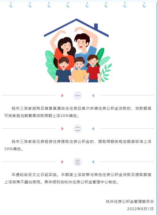 中新網(wǎng)8月1日電 據(jù)“杭州公積金發(fā)布”公眾號8月1日消息,杭州住房公積金管理委員會發(fā)布通知,加大對三孩家庭解決基本住房問題的支持力度。