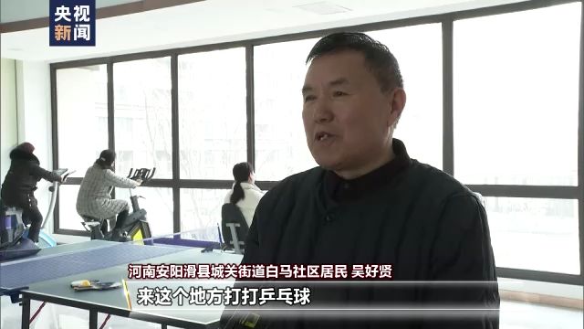 河南安陽滑縣城關街道白馬社區(qū)居民 吳好賢:經(jīng)常到這個地方來,來打打乒乓球,鍛煉鍛煉身體,下下象棋,身心挺好。