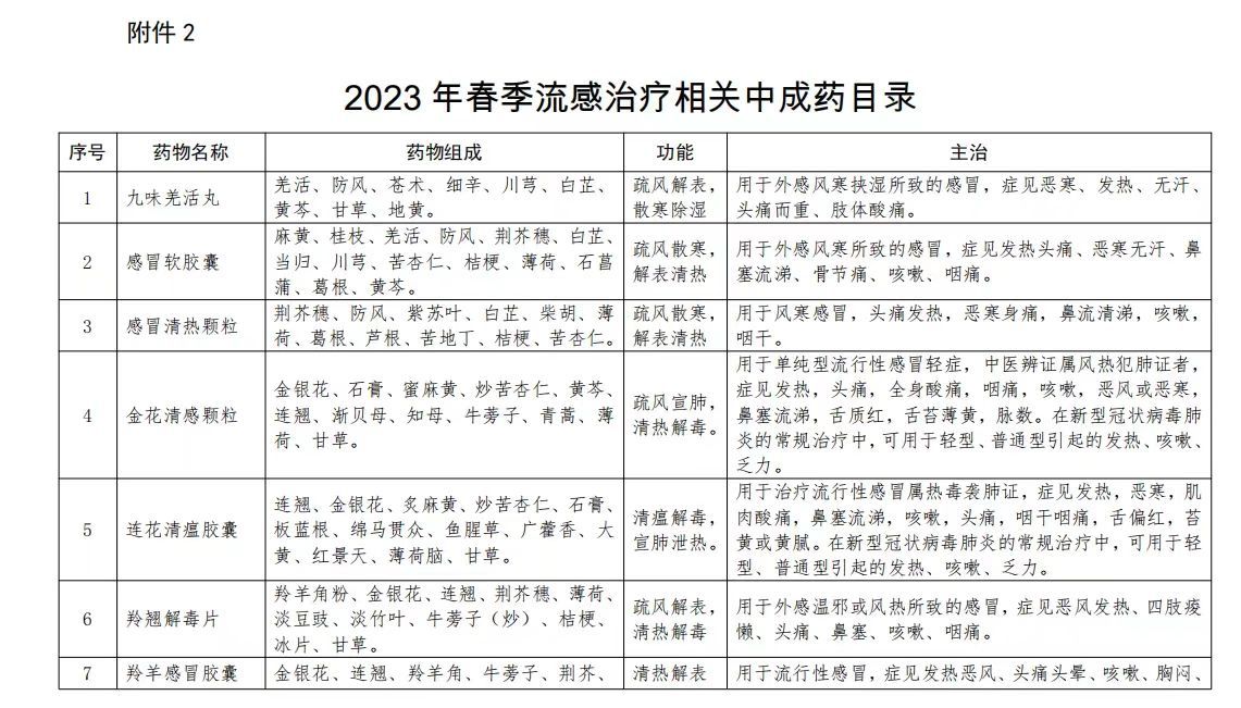 北京發(fā)布2023年春季流感治療相關中成藥目錄