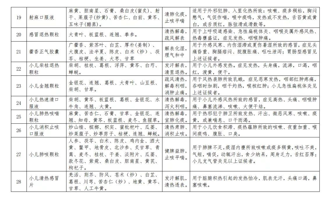 2023年春季流感治療相關中成藥目錄