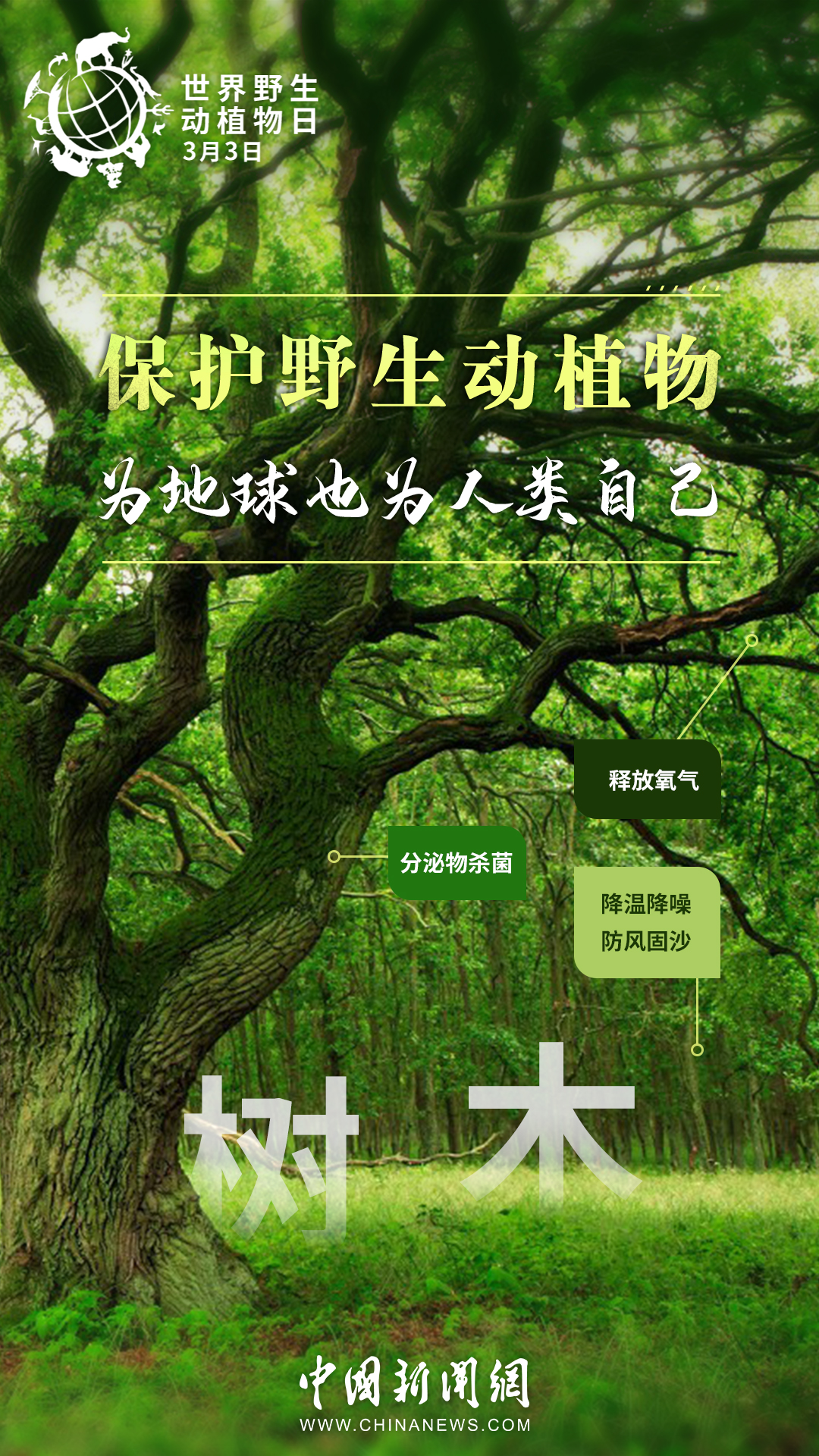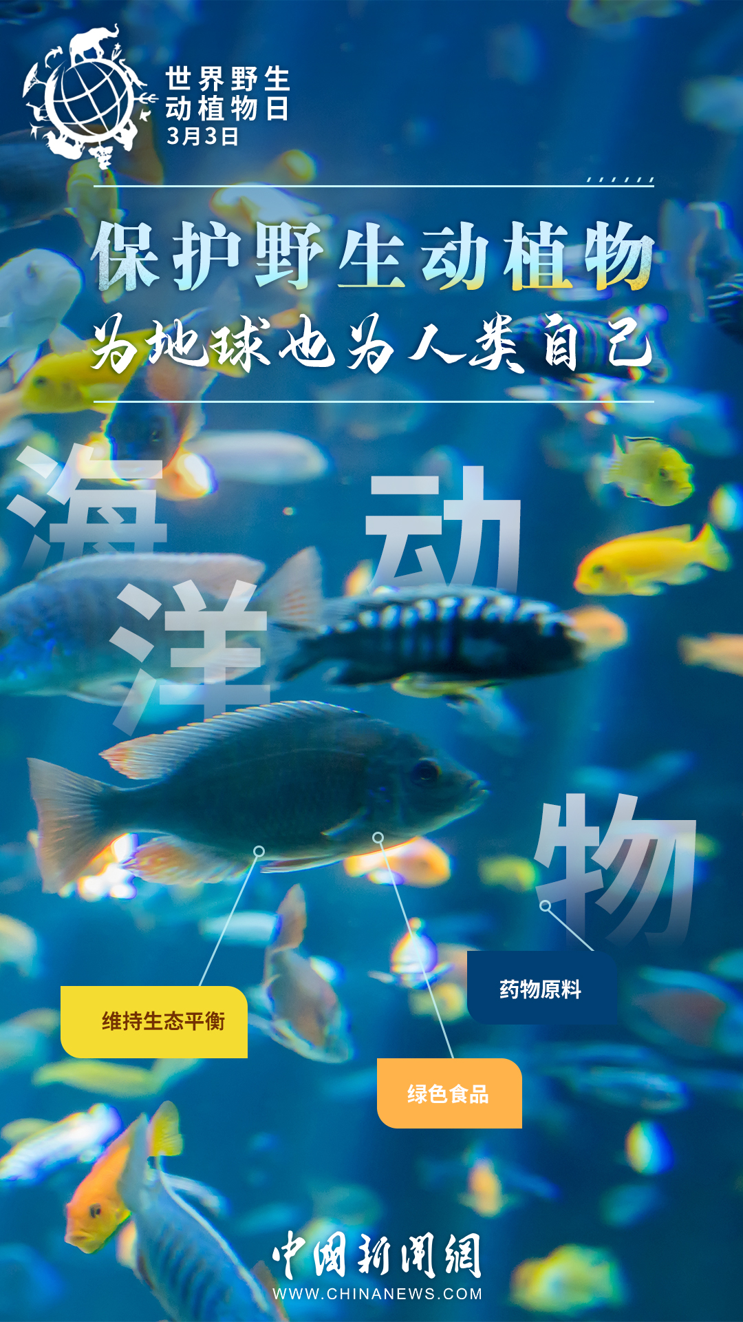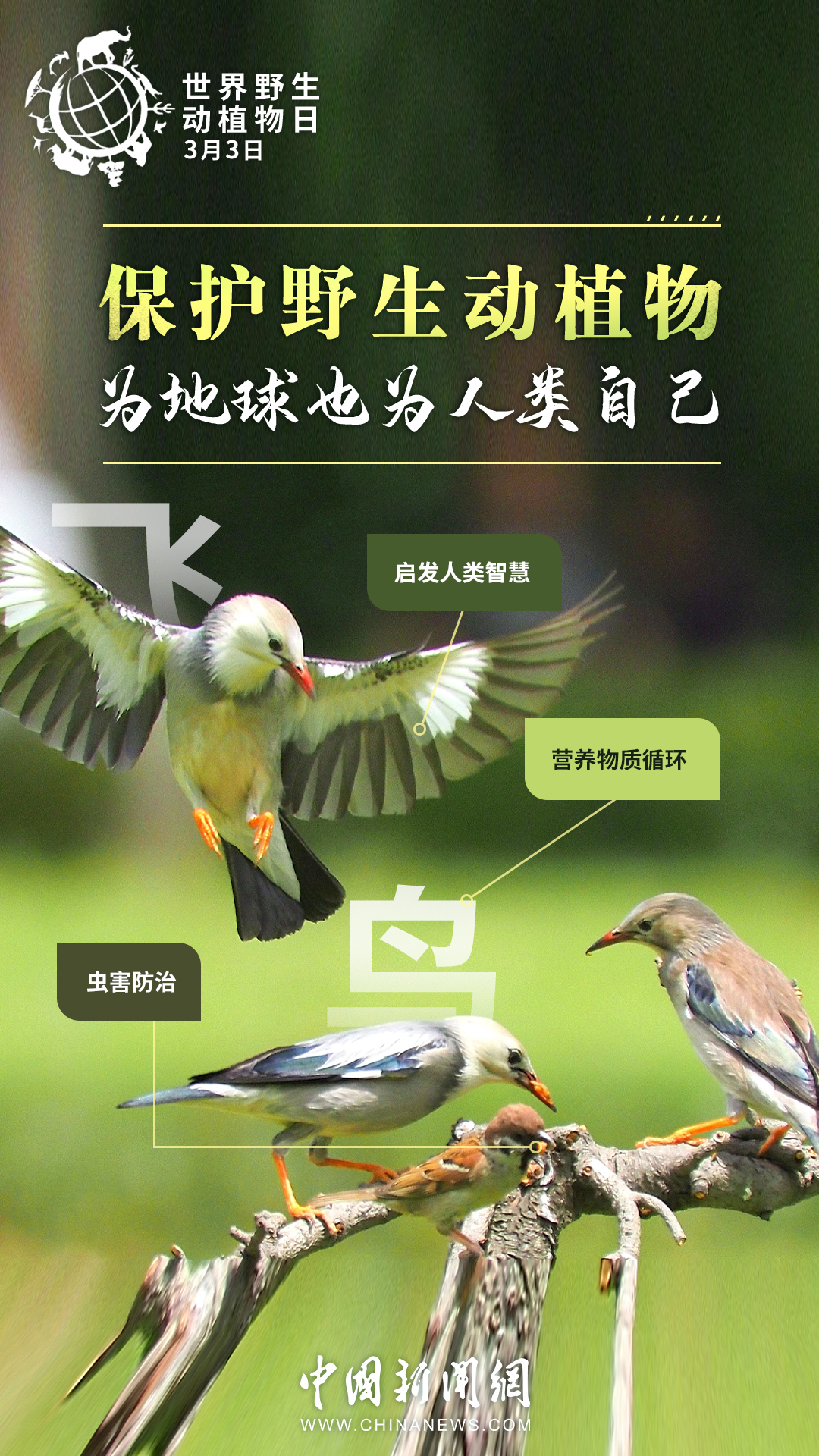 世界約80%的農(nóng)作物都依賴蜜蜂等蟲媒傳粉,一座鯨的尸體可以供養(yǎng)一套以分解者為主的循環(huán)系統(tǒng)長達百年……其實,大自然里的每種生物都有它存在的價值。今天是第十個“世界野生動植物日”,戳圖了解它們的作用,一起來保護野生動植物。