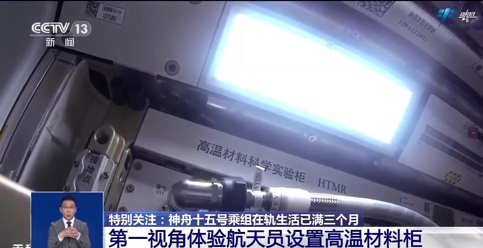 畫面中是航天員們正在設(shè)置高溫材料科學(xué)實(shí)驗(yàn)柜,這是支持在空間站微重力環(huán)境下進(jìn)行材料制備、加工、原位檢測(cè)、實(shí)時(shí)觀察和診斷于一體的新型實(shí)驗(yàn)裝置。最高加熱溫度能達(dá)到1600℃,溫度的穩(wěn)定度能達(dá)到±0.25℃,這個(gè)高溫材料科學(xué)實(shí)驗(yàn)柜的工作溫度、穩(wěn)定度和樣品數(shù)量、實(shí)時(shí)觀察成像技術(shù)均處于國(guó)際領(lǐng)先水平。