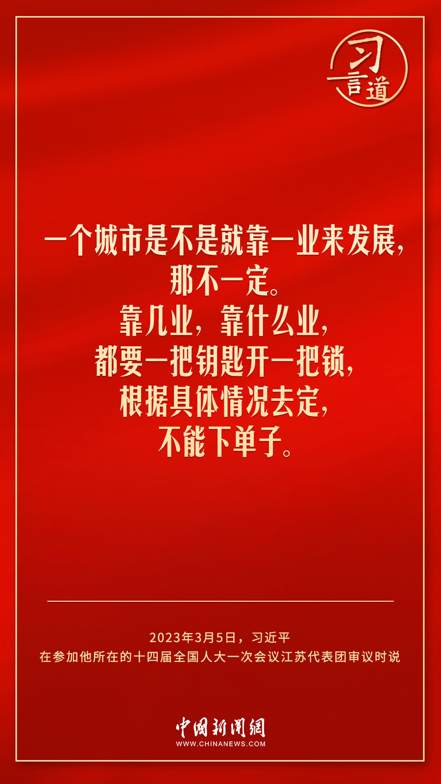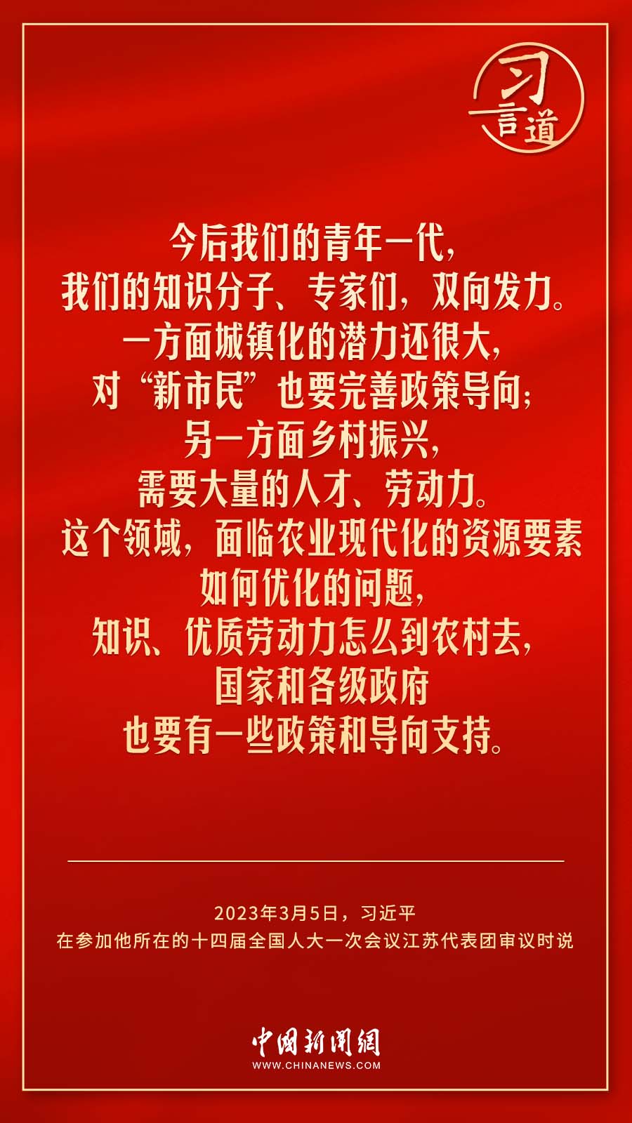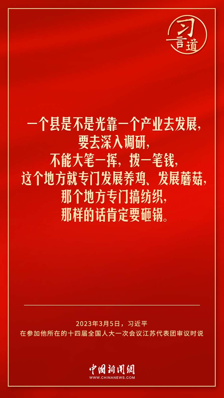 中共中央總書記、國家主席、中央軍委主席習近平3月5日下午在參加他所在的十四屆全國人大一次會議江蘇代表團審議時說——