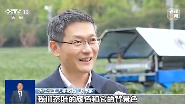 浙江理工大學(xué)教授 武傳宇:那么這個最大的問題是在于,我們茶葉的顏色和它的背景色幾乎是一樣的,它沒有明顯區(qū)分。另外一個的話呢,這個目標(biāo)是非常小的,我們最小的采摘的一個點的話呢,只有2個毫米左右。還有一個的話呢,我們茶園的這個綠地,有可能在山坡上,在平整地上的相對會少一些。