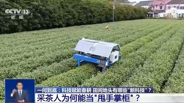 農(nóng)業(yè)科技的運用打開了種田人的新空間,我們再去采茶園看看。眼下,正是春茶采摘旺季,各地的茶農(nóng)都在忙著采摘茶芽。不過您知道嗎?現(xiàn)在采茶人也能當(dāng)“甩手掌柜”了。為了幫助茶農(nóng)提產(chǎn)增收,當(dāng)?shù)芈?lián)合高校機器人團隊,經(jīng)過不斷嘗試、改進,研發(fā)出了自主識別茶樹芽葉的智能采茶機器人。跟隨記者的鏡頭,一起去浙江杭州的茶園里看看。