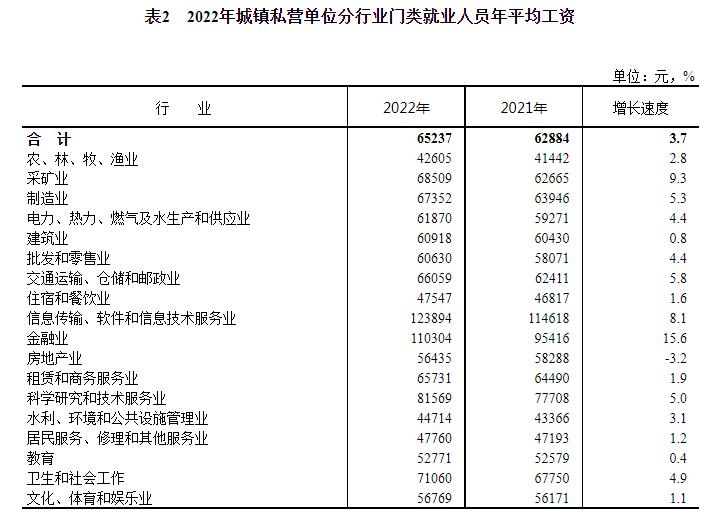 2022年城鎮(zhèn)私營單位分行業(yè)門類就業(yè)人員年平均工資。來自國家統(tǒng)計局網(wǎng)站