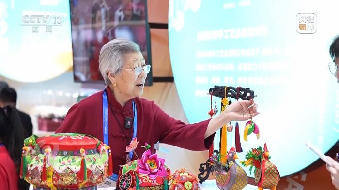 在江蘇展區(qū),一位正在做針線活的白發(fā)老人引人注目,她是江蘇省級(jí)非遺項(xiàng)目傳承人王秀英。王奶奶做的徐州香包名字叫做針棒,有著豐厚的文化蘊(yùn)涵和文化價(jià)值,入選第一批國家級(jí)非物質(zhì)文化遺產(chǎn)擴(kuò)展項(xiàng)目名錄。這次和王奶奶一同來參展的還有她的孫女孫歌堯。在學(xué)習(xí)傳統(tǒng)工藝的同時(shí),孫歌堯大膽創(chuàng)新,嘗試融入更多技法和材質(zhì)。