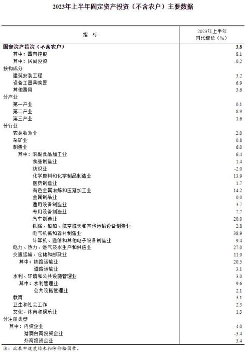中新網7月17日電 國家統計局網站17日公布數據顯示,上半年,全國固定資產投資(不含農戶)243113億元,同比增長3.8%(按可比口徑計算)。其中,民間固定資產投資128570億元,同比下降0.2%。從環(huán)比看,6月份固定資產投資(不含農戶)增長0.39%。