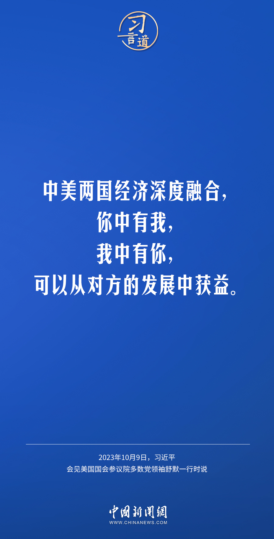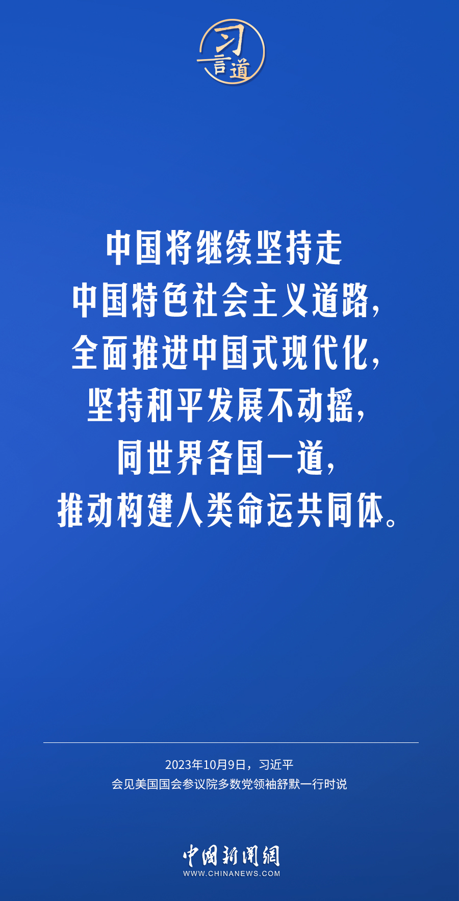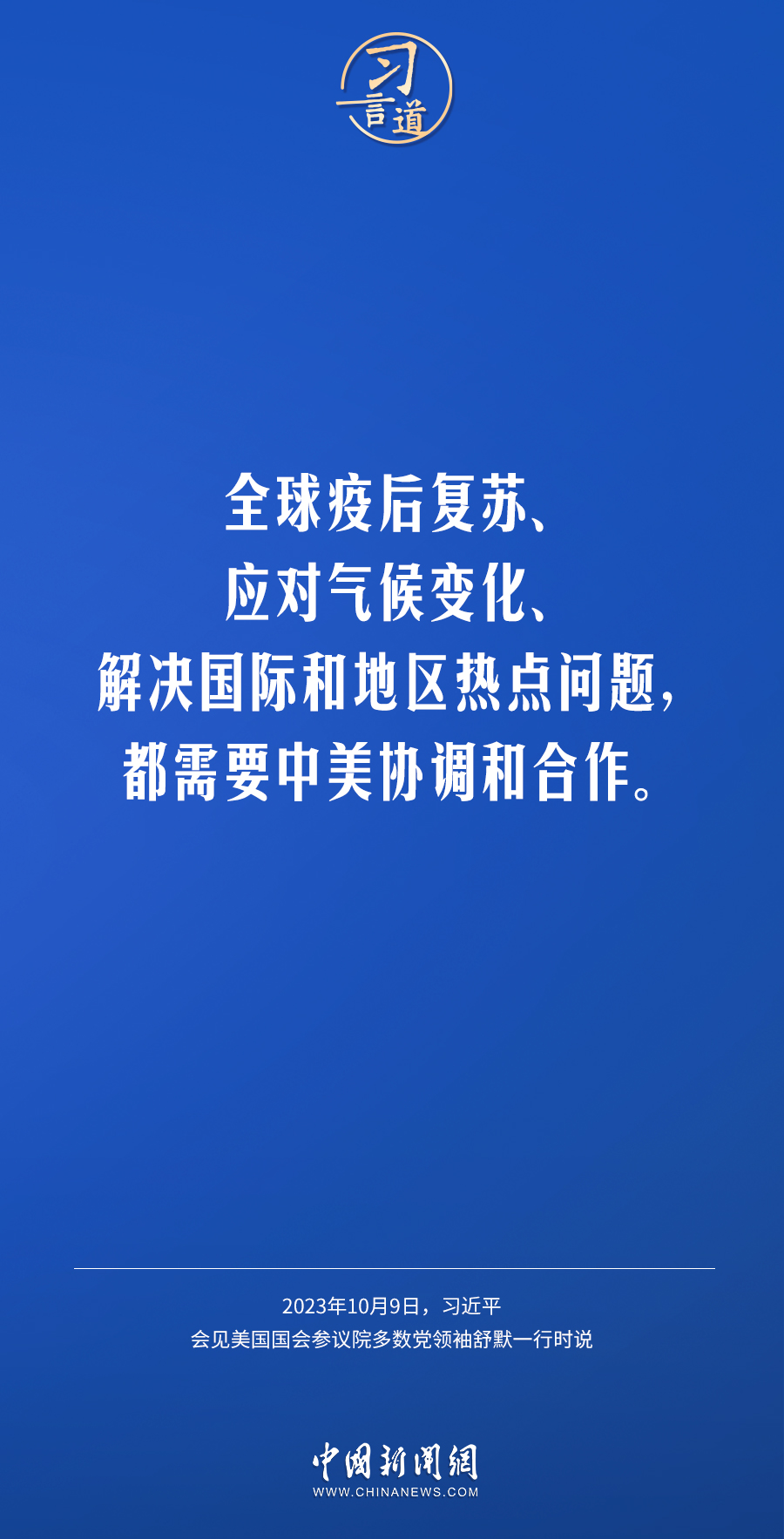10月9日下午,國家主席習(xí)近平在人民大會(huì)堂會(huì)見美國國會(huì)參議院多數(shù)黨領(lǐng)袖舒默率領(lǐng)的美國國會(huì)參議院兩黨代表團(tuán)。習(xí)近平指出——
