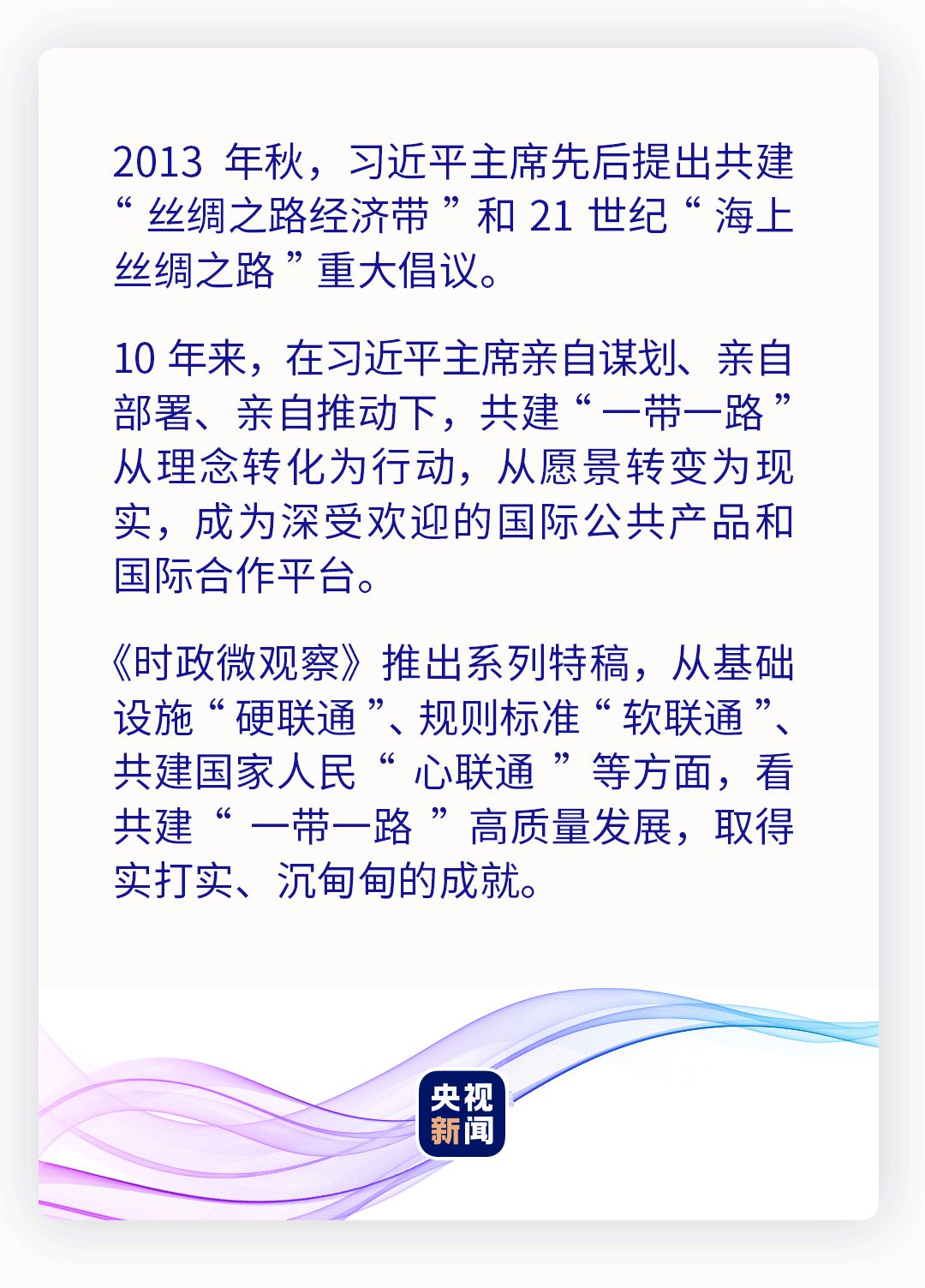民相親在于心相通。民心相通,是最基礎(chǔ)、最堅實、最持久的互聯(lián)互通。10年來,一個個項目在共建“一帶一路”國家落地開花,拉近了各國人民的心。