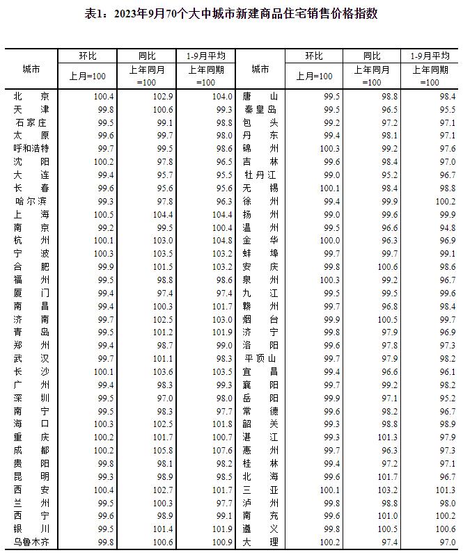 9月一線城市新建商品住宅銷售價格環(huán)比持平 同比漲幅擴大