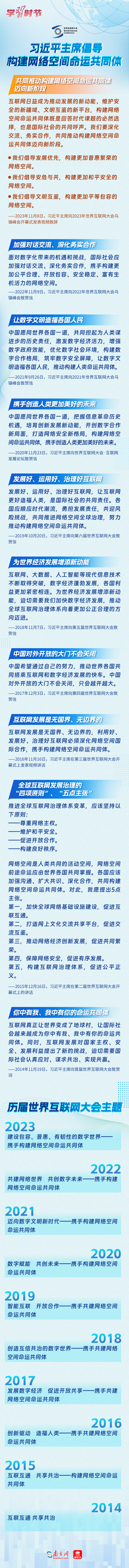 自2014年首屆世界互聯(lián)網(wǎng)大會舉辦以來,習近平主席或親臨現(xiàn)場發(fā)表主旨演講,或視頻致辭,或向大會發(fā)來賀信,以不同形式關(guān)心大會的舉辦。習近平主席的講話、賀信始終貫穿著一個理念主張——構(gòu)建網(wǎng)絡(luò)空間命運共同體。讓我們一同學習習近平主席的重要論述,一同回顧“烏鎮(zhèn)十年”。