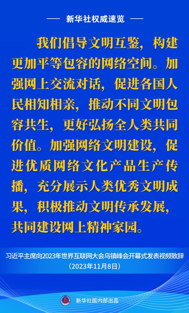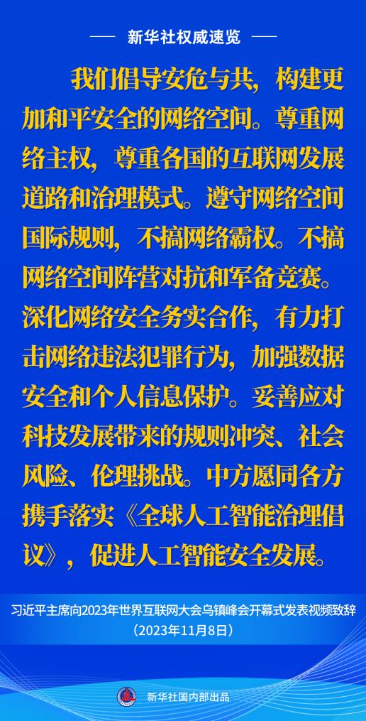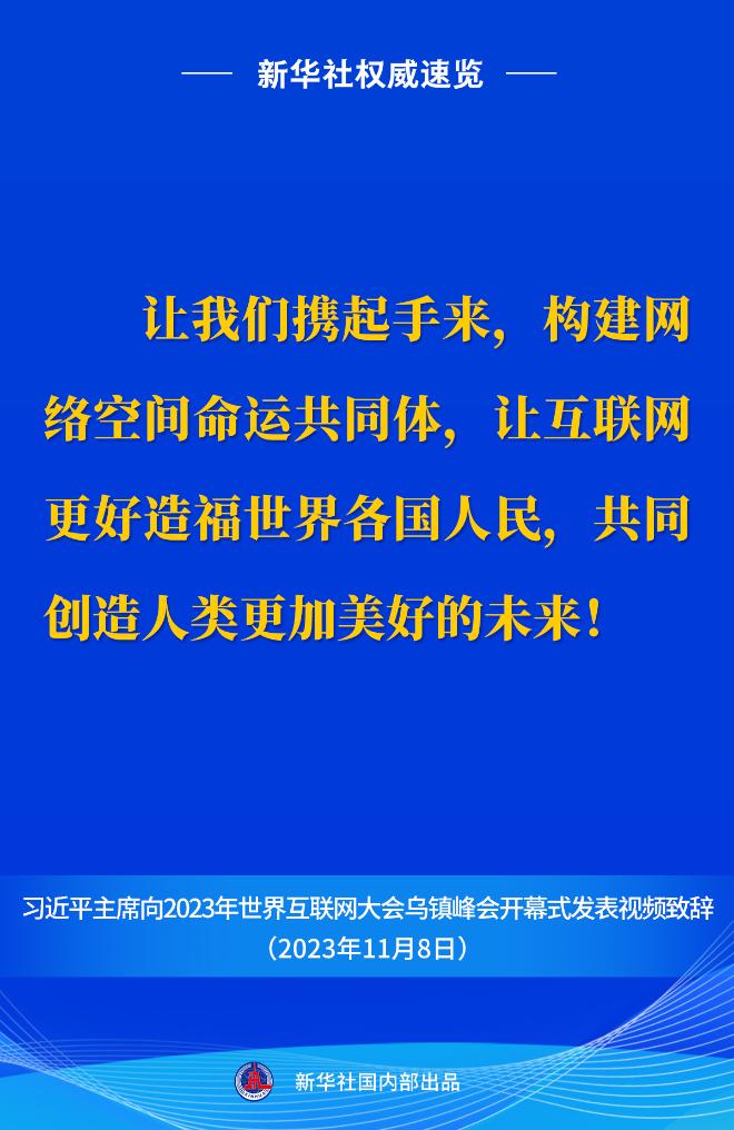 新華社權威速覽丨習近平主席向2023年世界互聯(lián)網(wǎng)大會烏鎮(zhèn)峰會開幕式視頻致辭金句