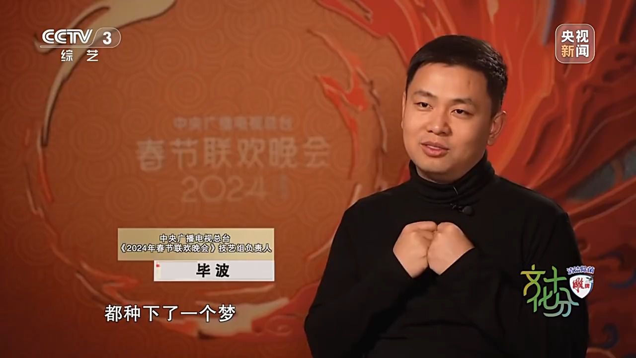 中央廣播電視總臺(tái)《2024年春節(jié)聯(lián)歡晚會(huì)》技藝組負(fù)責(zé)人 畢波:我們童年看到的很多文藝作品,其實(shí)在我們心中都種下了一個(gè)夢(mèng),過(guò)去了二三十年它開(kāi)始生根發(fā)芽。研究蛟龍?zhí)柕倪@些科研人員,他們小時(shí)候也看《哪吒鬧?!?,我們甚至邀請(qǐng)了航天員去唱這首歌,他們小時(shí)候看的是《大鬧天宮》,現(xiàn)在他們?nèi)司驮谔鞂m,這是一個(gè)多么美妙的實(shí)現(xiàn)圓夢(mèng)的故事。