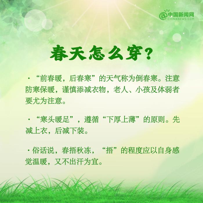 春天是萬物復(fù)蘇的季節(jié),也是調(diào)養(yǎng)身體的好時節(jié)。①每天保證6~8小時的睡眠,避免熬夜;②適當(dāng)進(jìn)行一些戶外活動,曬太陽、踏青賞景等;③不過早減衣,穿衣注意下厚上?。虎茏⒁馇宓嬍?,多吃蔬菜,多喝水……春季養(yǎng)生要注意什么?詳戳↓↓