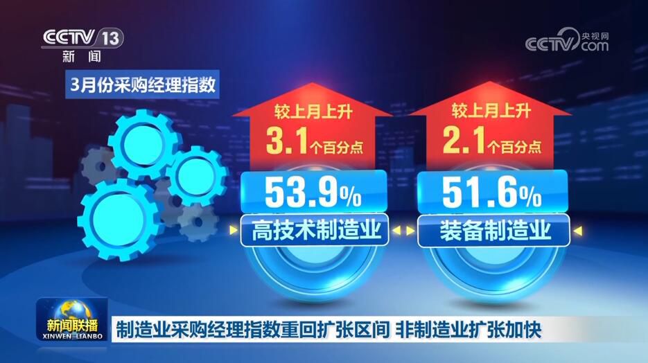 中國物流與采購聯(lián)合會、國家統(tǒng)計局服務(wù)業(yè)調(diào)查中心今天(3月31日)公布3月份中國采購經(jīng)理指數(shù)。制造業(yè)采購經(jīng)理指數(shù)重回擴張區(qū)間,景氣水平明顯提升,非制造業(yè)繼續(xù)加快擴張。