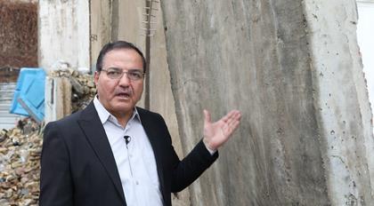 2023年3月15日,在伊拉克首都巴格達(dá),巴格達(dá)分社的伊拉克籍雇員賈邁勒站在防爆墻前。新華社發(fā)(董亞雷攝)