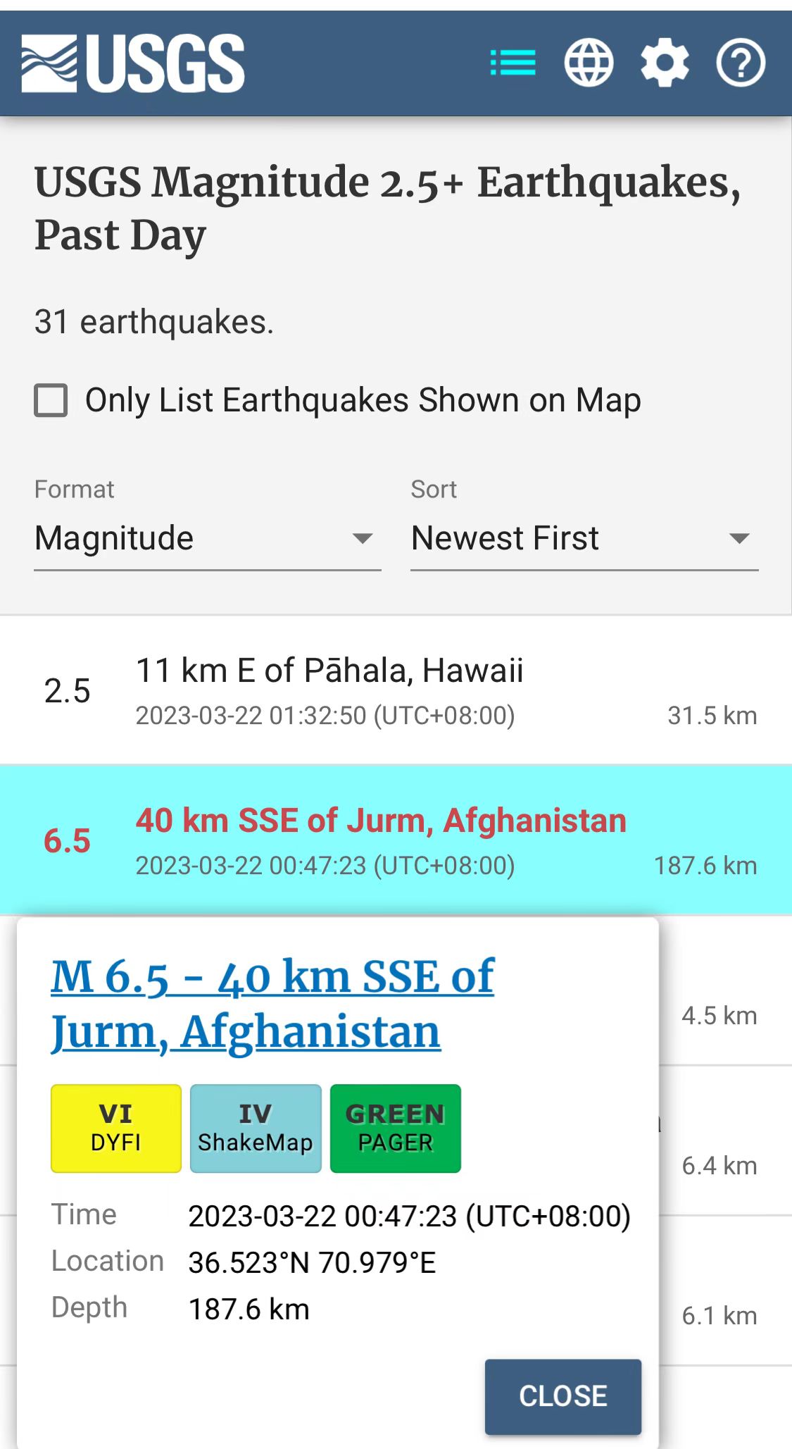 據(jù)報(bào)道,這場地震發(fā)生在阿富汗東北部巴達(dá)赫尚省城鎮(zhèn)尤爾姆東南偏南40公里處,震級里氏6.5級,震源深度187.6公里。