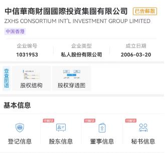 中新財經(jīng)還以“華商財團”為關(guān)鍵詞通過企查查APP進行搜索,出現(xiàn)“中匯華商財團投資管理(北京)有限公司”、“中信華商財團國際投資集團有限公司”兩項最為相關(guān)的結(jié)果。前者為注冊資本1000萬元人民幣的小微企業(yè),后者則被標(biāo)注“已告解散”。