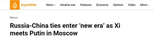 卡塔爾半島電視臺網(wǎng)站21日報(bào)道稱,中俄元首簽署聯(lián)合聲明,將深化新時(shí)代中俄關(guān)系,俄中合作具有無限可能和廣闊前景。
