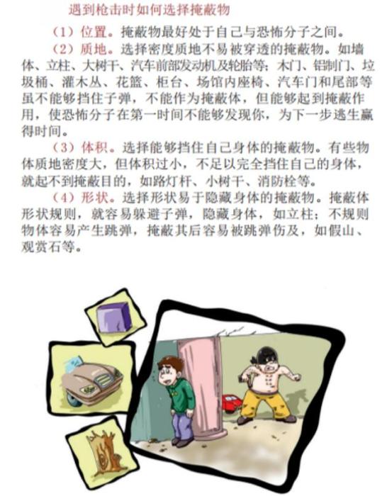 遇到槍擊時(shí)如何選擇掩蔽物 圖片來源:中國駐美國大使館微信公眾號(hào)