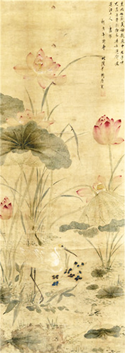 展覽畫作之一:唐宇昭《荷鷺圖軸》
