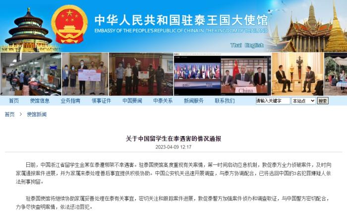 中使館通報(bào)留學(xué)生在泰遇害案:高度重視,敦促泰方全力偵破