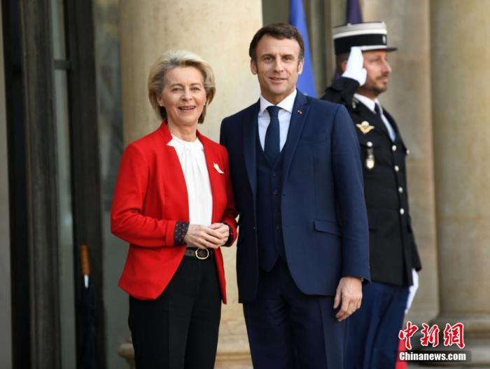 資料圖:法國總統(tǒng)馬克龍與歐盟委員會主席馮德萊恩。中新社記者 李洋 攝