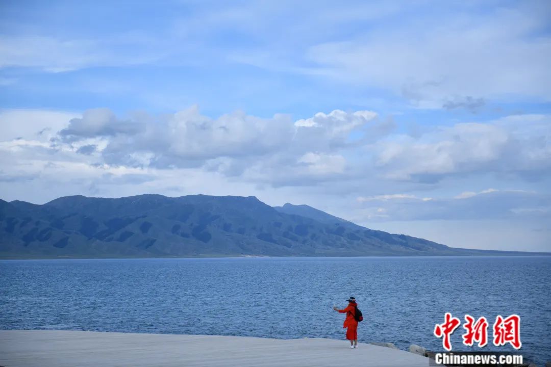 位于天山山脈的新疆賽里木湖景區(qū)內(nèi),湛藍(lán)的湖水與天一色,同遠(yuǎn)處山峰相映成畫(huà)。張興龍 攝