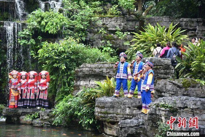山歌手在柳州市柳侯公園唱起山歌。王以照 攝