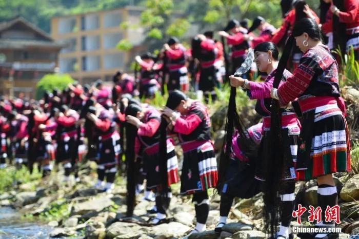 龍勝各族自治縣的民俗巡游、長(zhǎng)發(fā)梳妝