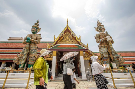 5月1日,游客在泰國曼谷大王宮景區(qū)游覽。新華社記者王騰攝
