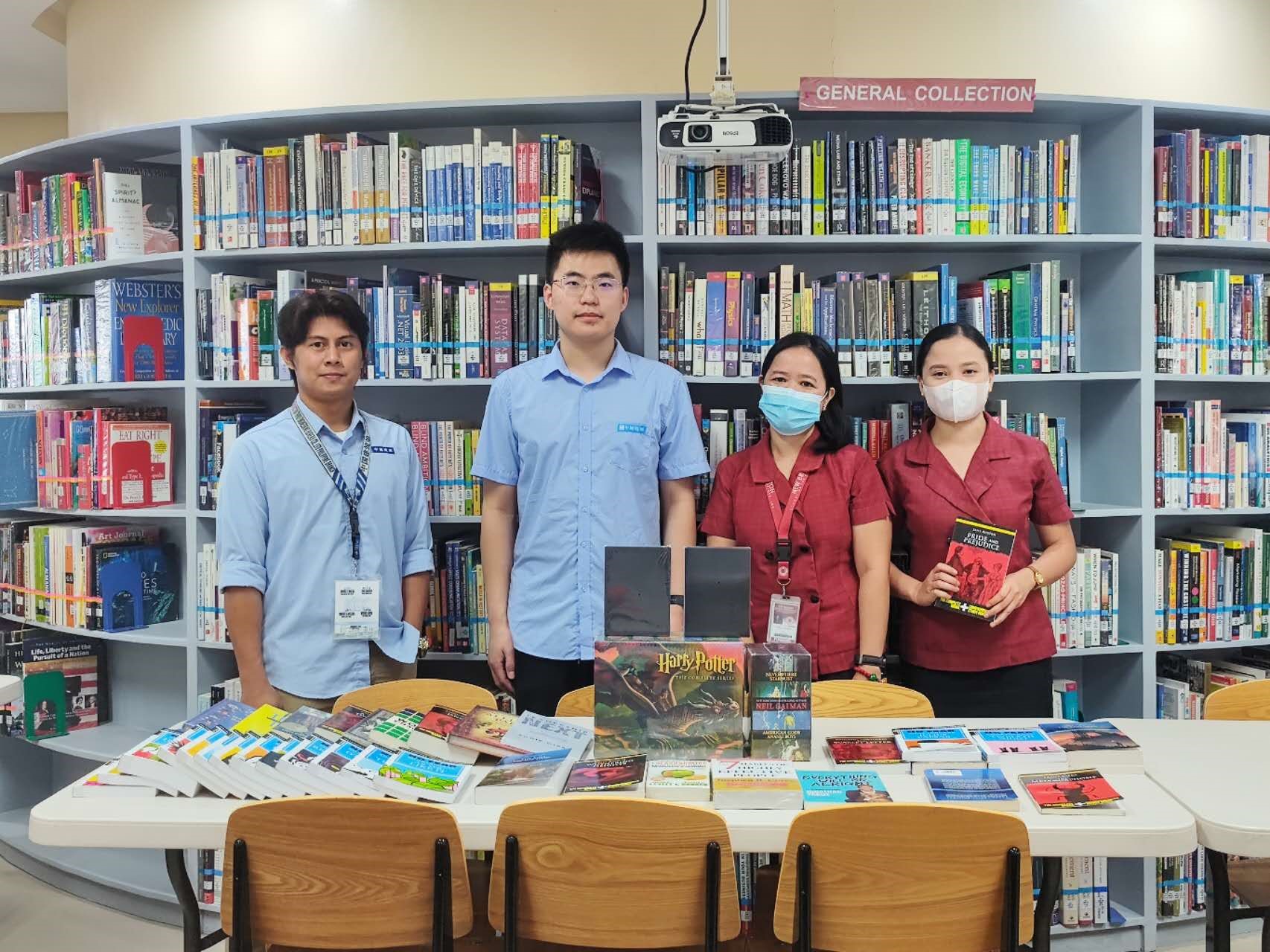 活動(dòng)結(jié)束后,中建三局菲律賓KCC項(xiàng)目向菲律賓新布萊頓學(xué)校捐贈50余本中外書籍和電子閱讀器等閱讀設(shè)備。