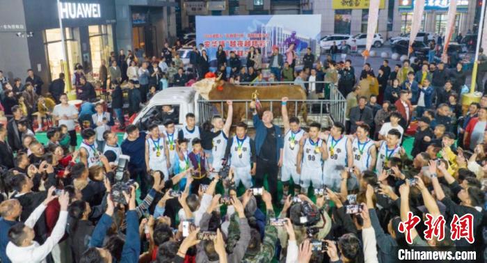“村BA”現(xiàn)場,冠軍隊(duì)伍獲得一頭黃?!≈T暨市融媒體中心 供圖
