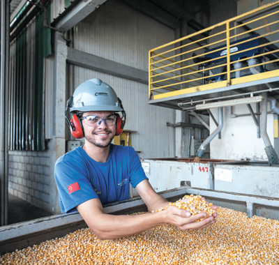 近年來,中國與巴西農(nóng)業(yè)科技合作不斷深化。圖為3月25日,在巴西圣保羅州雅爾迪諾波利斯市的中資企業(yè)隆平巴西種子工廠內(nèi),一名工作人員展示玉米種子。