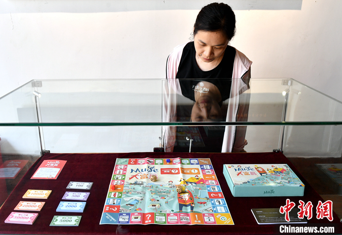 圖為臺灣文創(chuàng)產(chǎn)品《Muse17同樂游—大富翁桌游盒》吸引參觀者。 中新社記者 呂明 攝