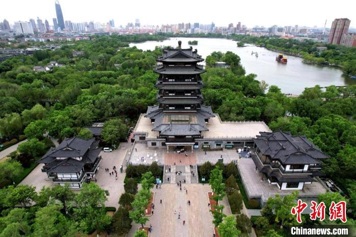 圖為近期航拍的濟(jì)南超然樓,半城湖色盡收眼底。 中新社記者 梁犇 攝