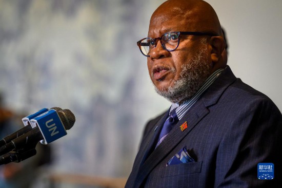 6月1日,在位于紐約的聯(lián)合國(guó)總部,特立尼達(dá)和多巴哥常駐聯(lián)合國(guó)代表丹尼斯·弗朗西斯當(dāng)選第78屆聯(lián)合國(guó)大會(huì)主席后向記者發(fā)表談話。新華社發(fā)(聯(lián)合國(guó)供圖/洛伊·費(fèi)利普攝)